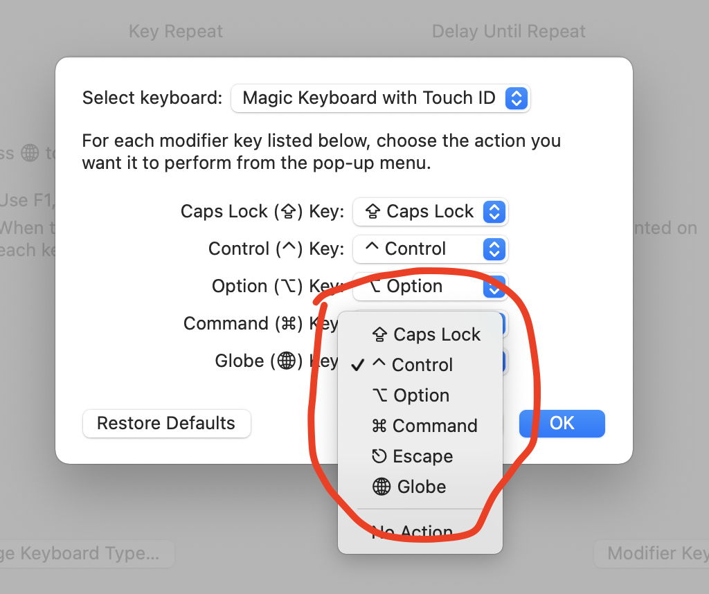 ... but if you hit the "Modifier Keys" button in that control panel, you get more options.