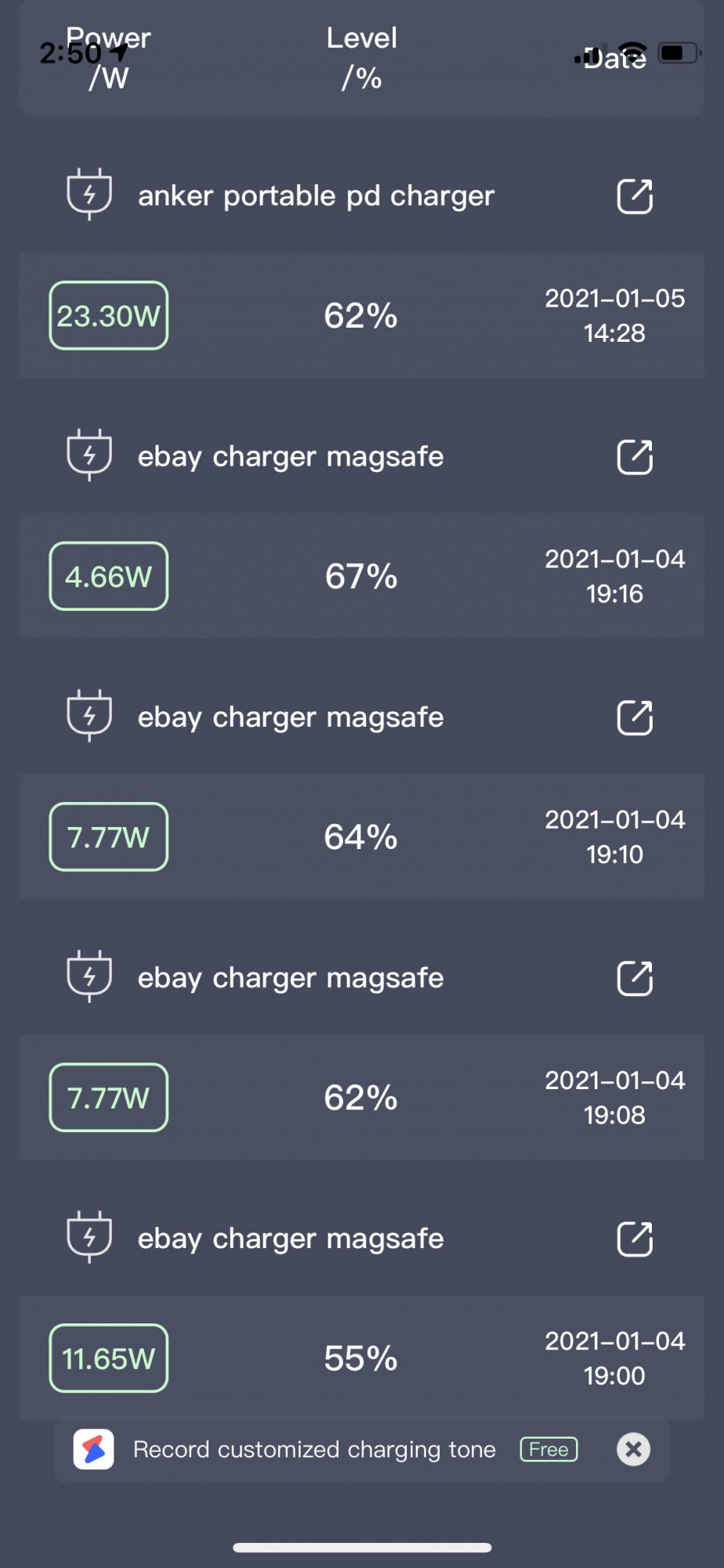 I bought this ebay magsafe car charger. Its essentially a clip mount and its rated for 15w on the box, using an aukey usb-c 30watt charger in my car. This isn't the most scientific measure but at least I have numbers. As you can see, I started charging at 55% and received 11.65w. Mini is limited to 12w magsafe charging according to Apple. At 62% it tapered to 7.77w until 67% where it tapered to 4.66w. Frankly I was surprised by how much this $19 charger was able to charge in a short time, 12% in 19 minutes. I wasn't really expecting much, I feared it would charge 1% only.