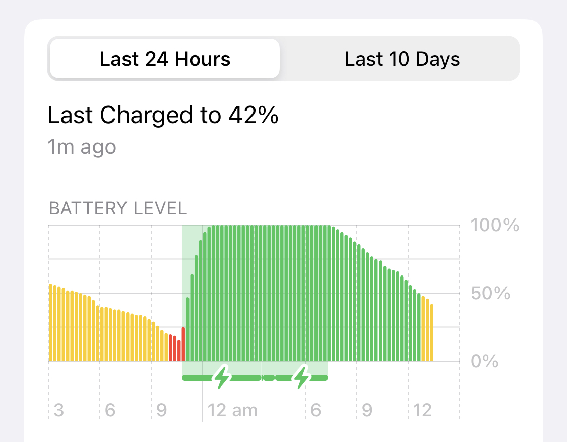 It looks like power was interrupted 3 or 4 times last night while I was asleep. Sometimes it’s more like 5 or 6. Note how my battery level does not seem to change during this time (ie. it’s not stopping at 80% and resumes charging later, it’s going straight to 100% and stays there until I wake up and remove it from the charger), which leads me to think the interruption is very brief and potentially an issue either with the dock or MagSafe itself? I’m concerned this is why the optimised battery charging hasn’t kicked in yet, and how this could affect my battery health long term.