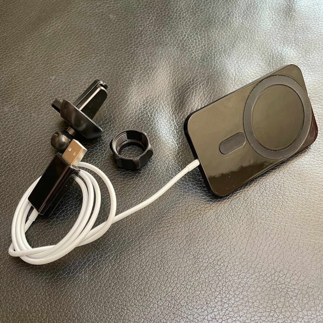 Thanks for the info. I asked first what the plug was and they replied usb-c on mine Mine is coming from Calf but has been shipping label created since 27 Nov. Scheduled to arrive 7 Dec eBay says. If it’s not usb-c it’s going right backOk, so I received my mount/charger from AliExpress today (https://www.aliexpress.com/item/1005001725287503.html). With coupon and shipping it was about $20. You can read my rationale behind picking this one in my prior post (https://forums.macrumors.com/thread...ts.2262215/page-7?post=29246630#post-29246630). It turns out to be, as far as I can tell, identical to the one rodriguez256 received from eBay. This means that it doesn't at all match the product page. This has the cable hardwired and not USB-C as depicted, and the plate is thinner and super glossy, not matte as in the photo. I will be requesting a refund or will do a chargeback if that is not successful.