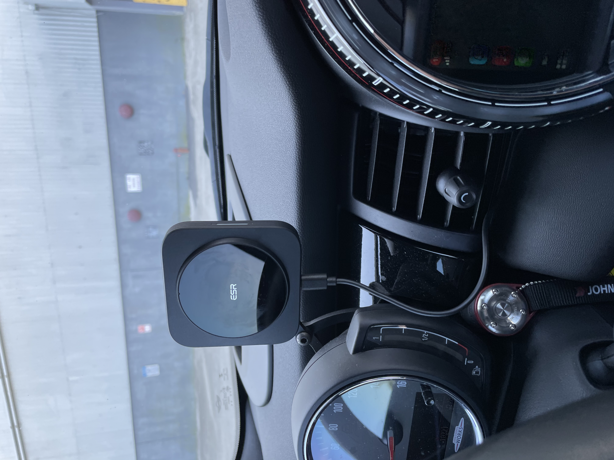 One note: the larger platform of something like the belkin vent mount would be useful here. The round holder I printed for the MagSafe charger is barely larger than the charger. If it was squared and went a little higher up or down it would prevent more lateral movements that could cause the magnet to break free. I do not believe there will ever be enough force, barring collision, to have enough force to pull straight off.