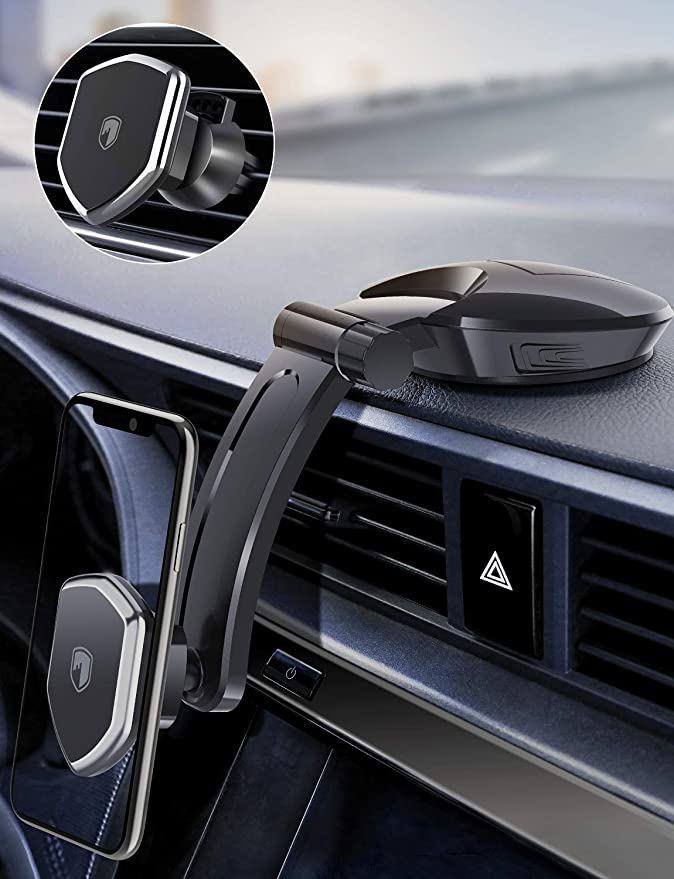 Magnetic Phone Car Mount - FITFORT Universal Dashboard Car Phone Holder with Strong Suction Cup and Comes with Air Vent Holder.​