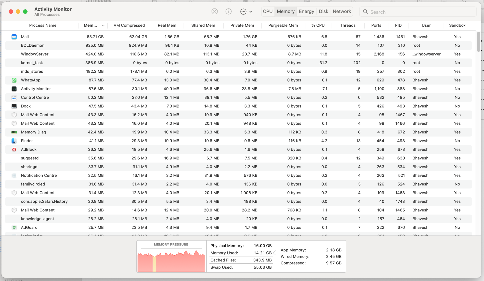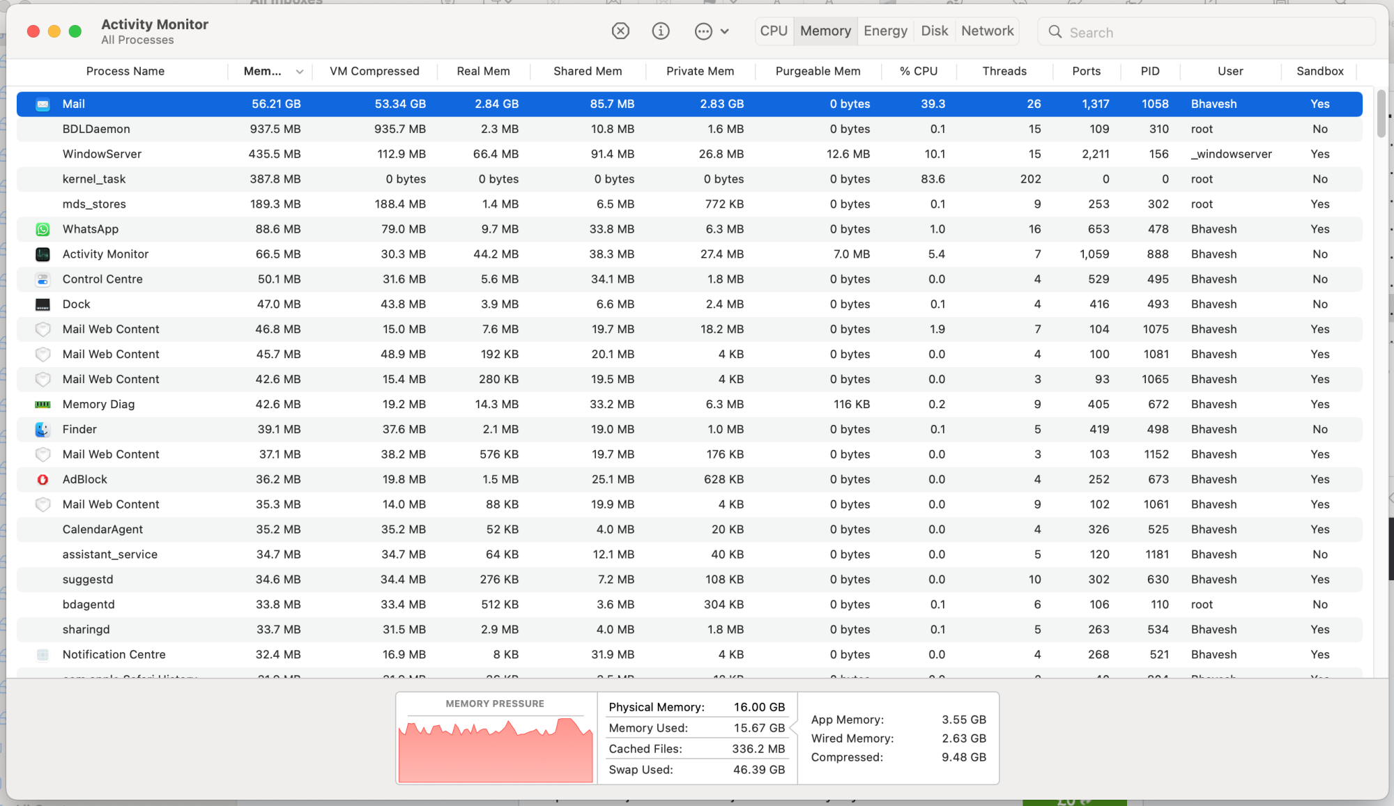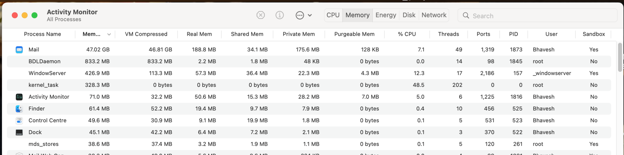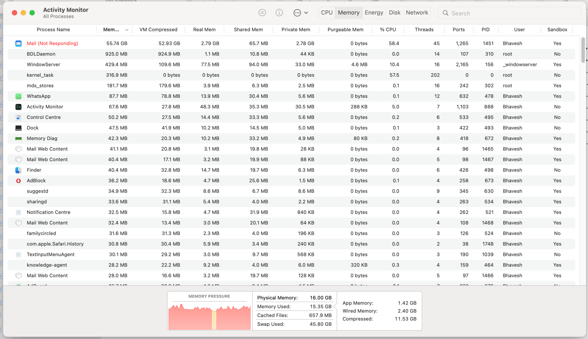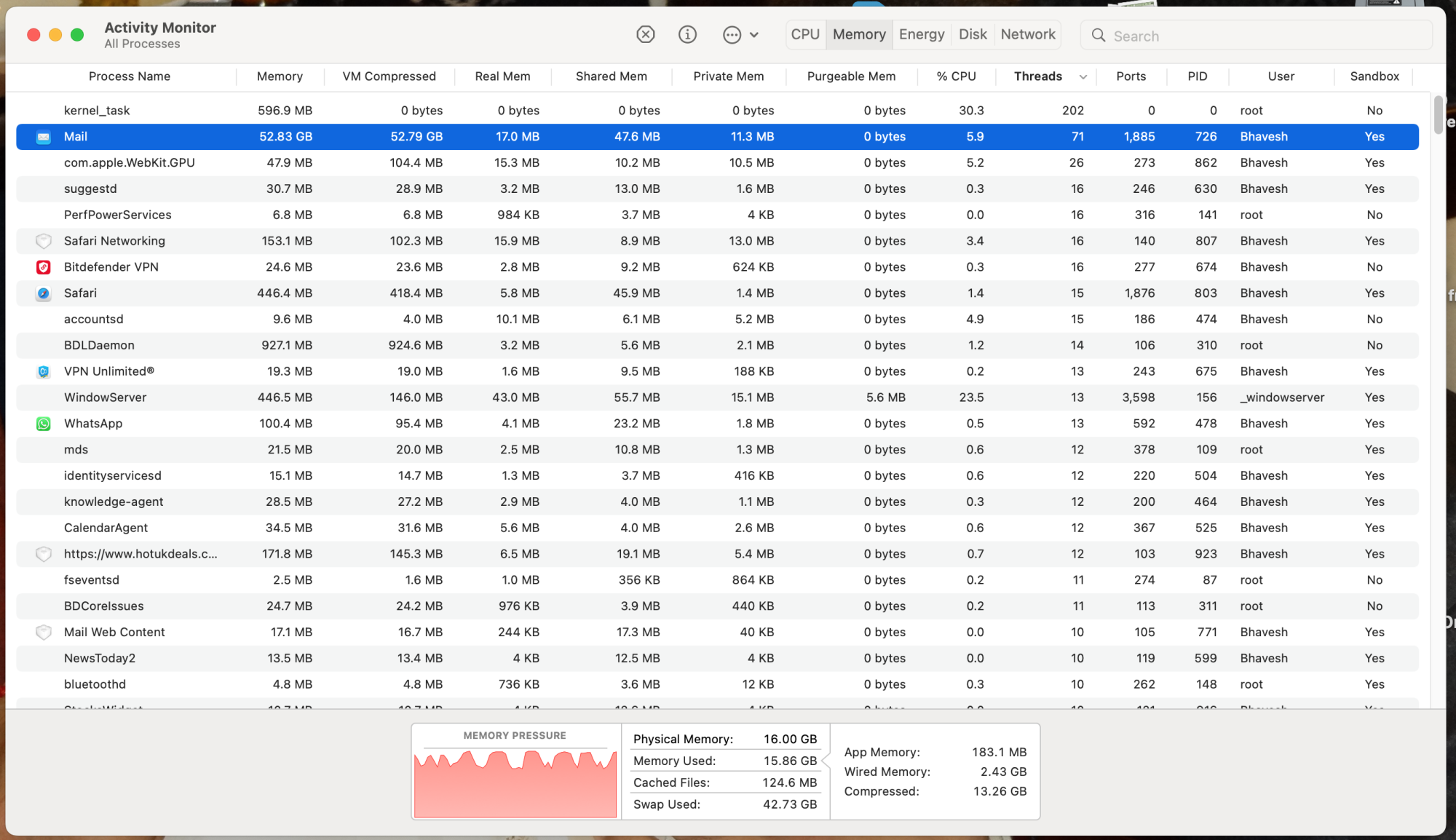 Whenever I open up the Mail App, it pretty much maxes out the RAM very quickly & the whole computer starts to become very laggy & starts to freeze. I get messages saying Memory Level is Critical over & over again. The unit basically becomes unusable. The RAM usages goes to Zero & then drops down to around 7% remaining & fluctuates constantly between these two numbers.