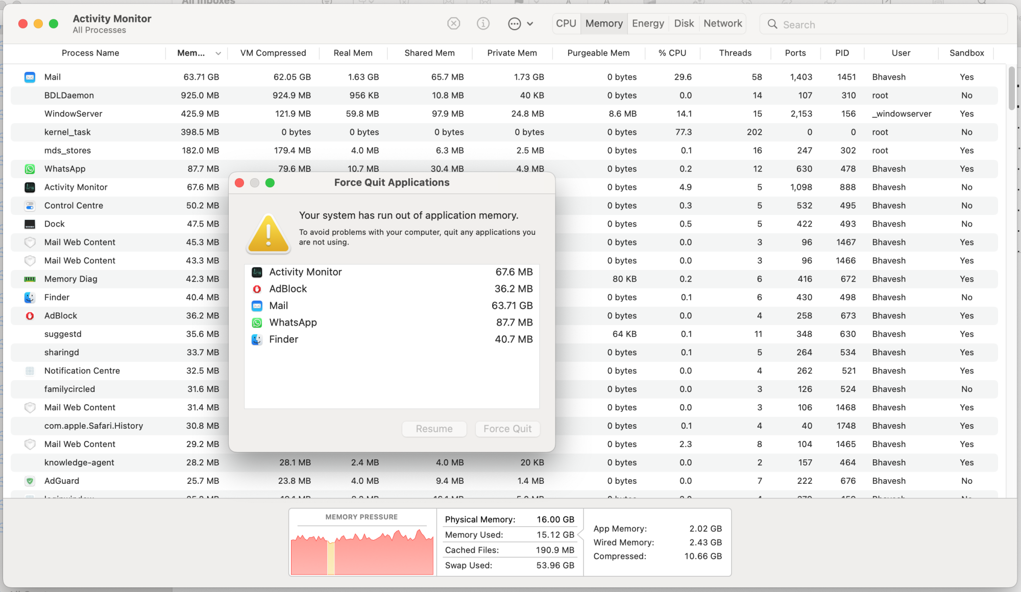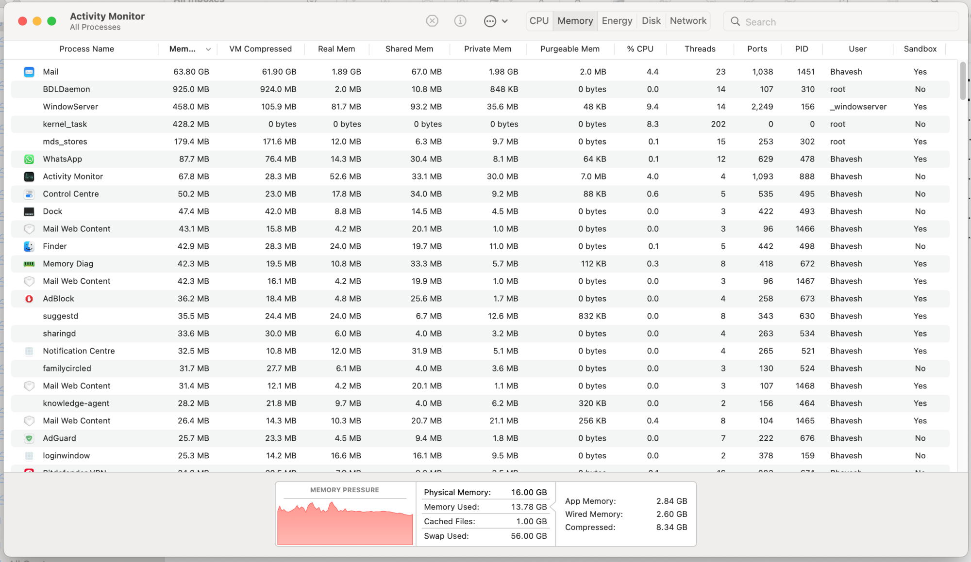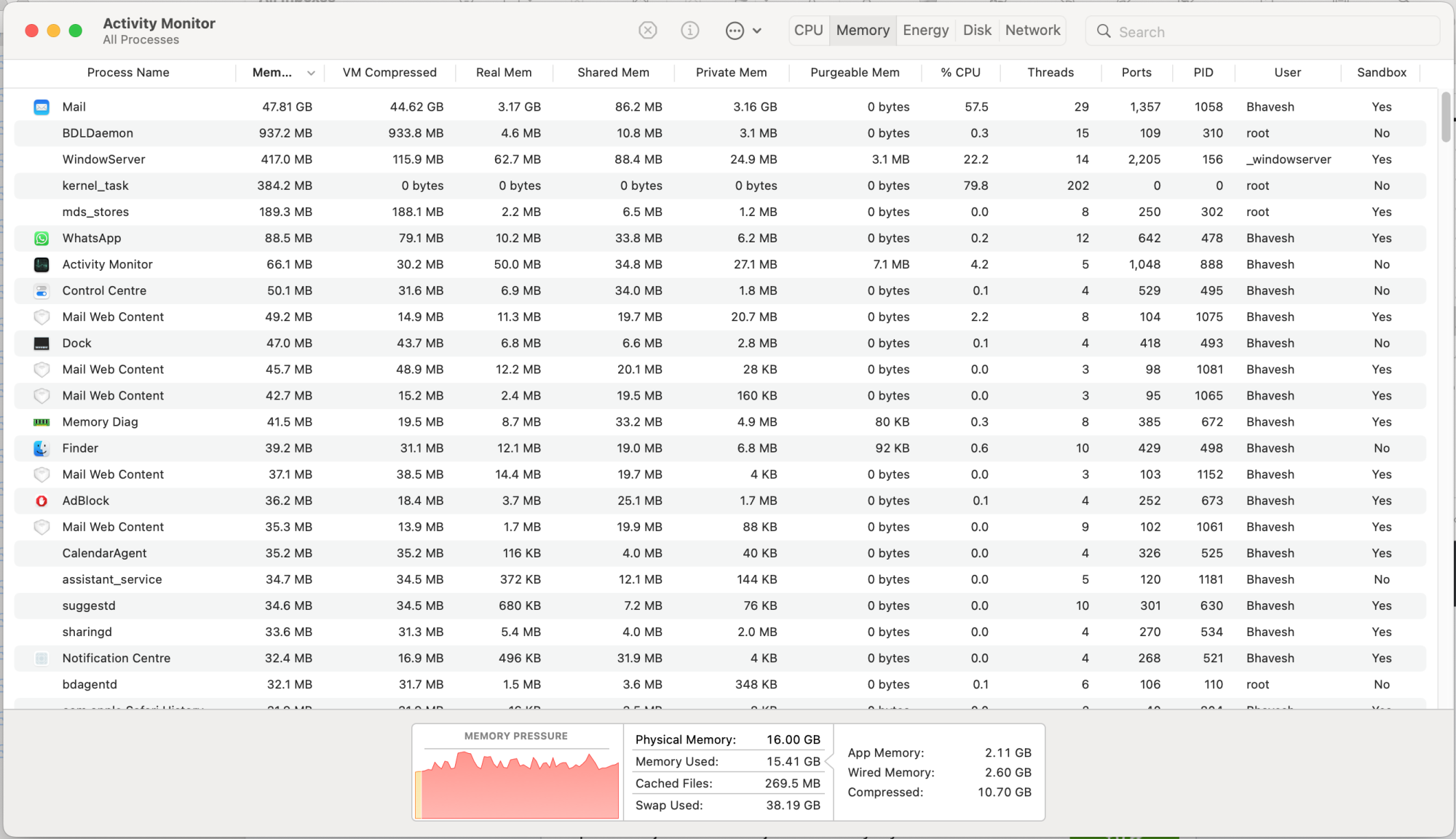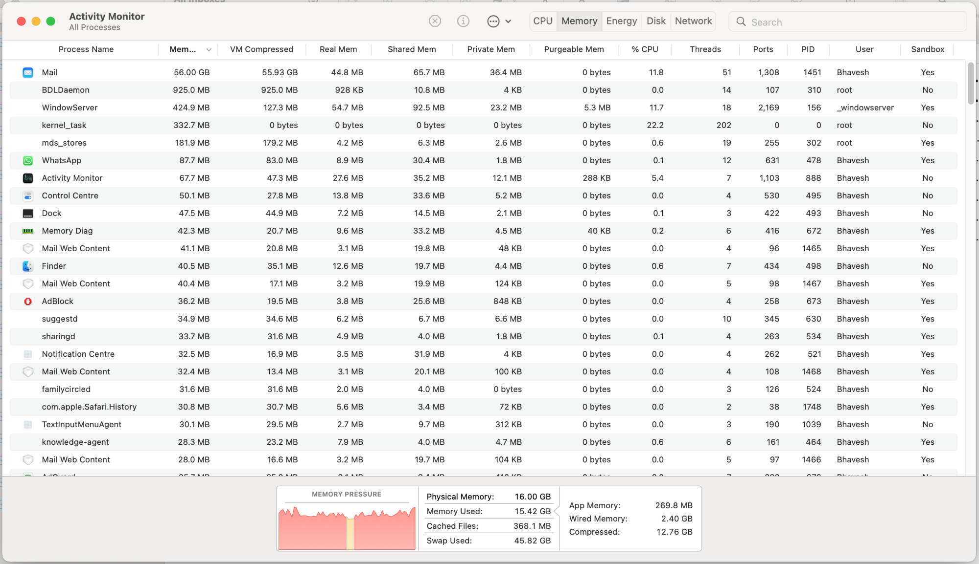 Whenever I open up the Mail App, it pretty much maxes out the RAM very quickly & the whole computer starts to become very laggy & starts to freeze. I get messages saying Memory Level is Critical over & over again. The unit basically becomes unusable. The RAM usages goes to Zero & then drops down to around 7% remaining & fluctuates constantly between these two numbers.