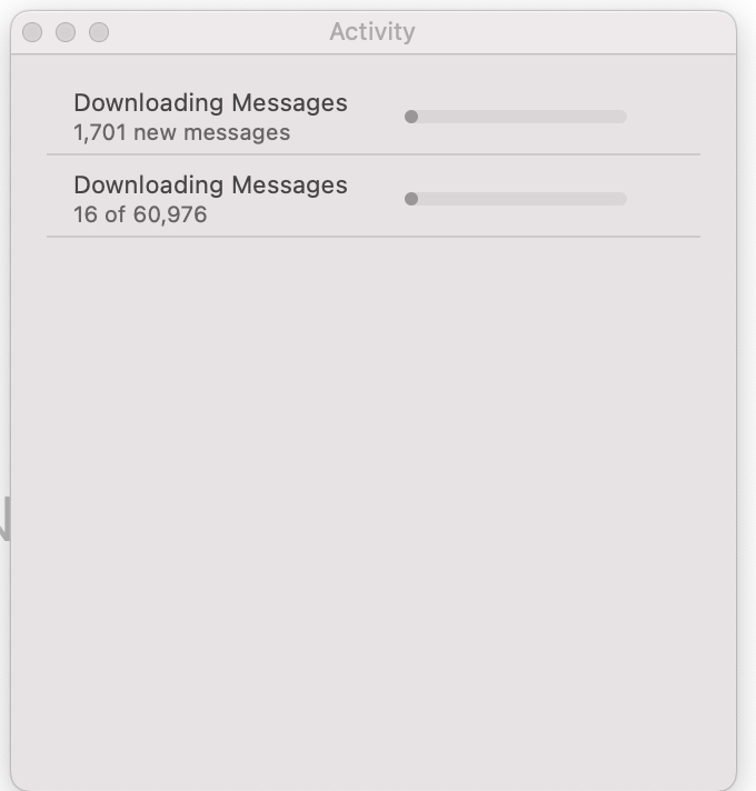 My Mac mail client is constantly downloading new messages, see attached.