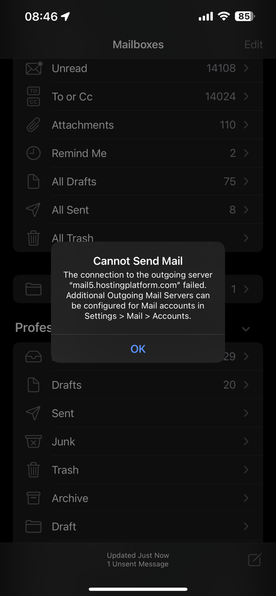 Sending a 48MB attachment, trying from multiple email domains including my private domaine, Gmail, Outlook, etc.., but no luck. I get the error message I screenshot on attachment each time. Everything worked properly before upgrades.