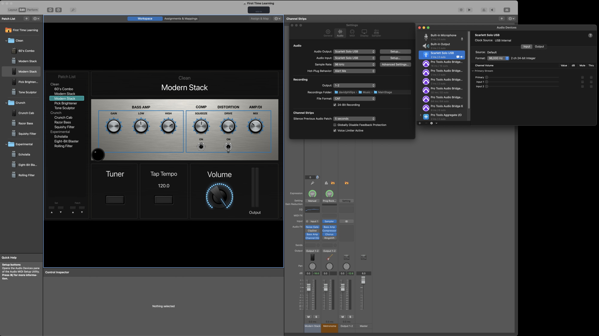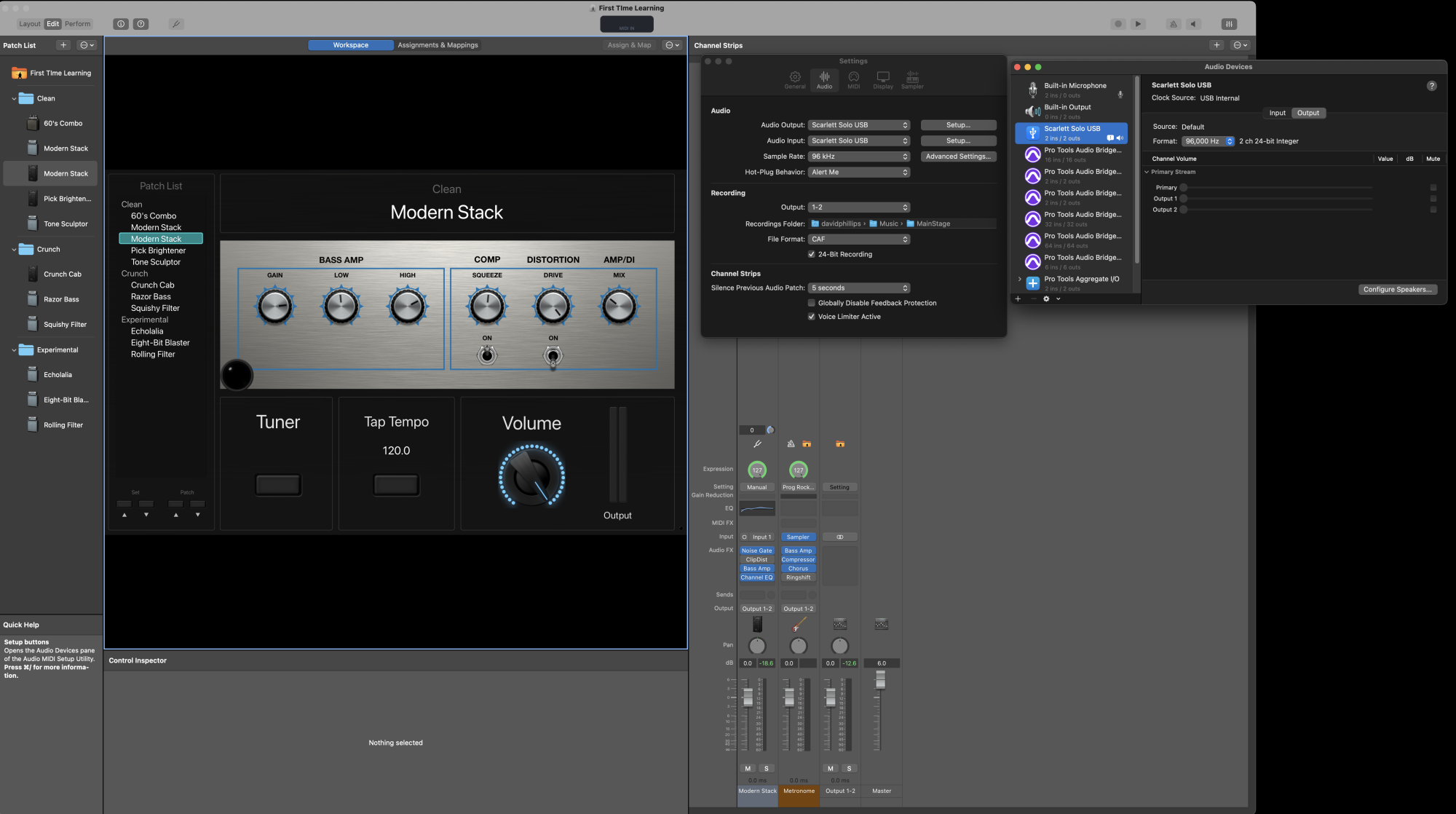 I am trying to setup my new MainStage 3 with my Scarlett Solo on my iMac. I am currently running GarageBand successfully.