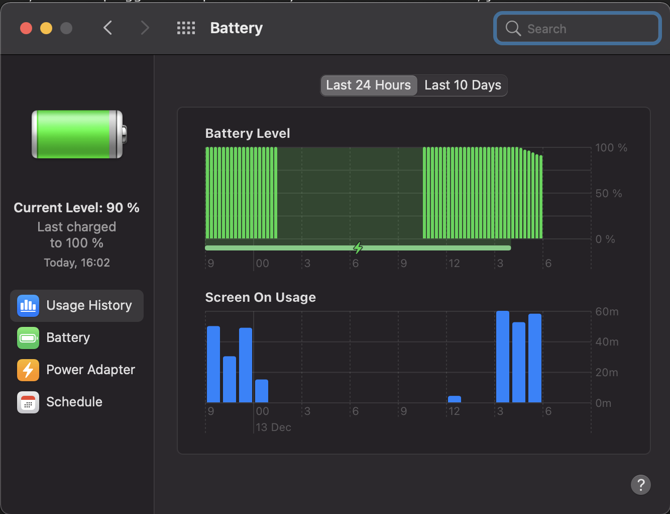 That energy impact graph seems to show something has been hitting the battery significantly. Mine rarely shows it so spiky, unless I've been compiling code or installing something. There are different views on that tab, I think there's a processes/hierarchical one that shows more details (but not the 12 hr part)
