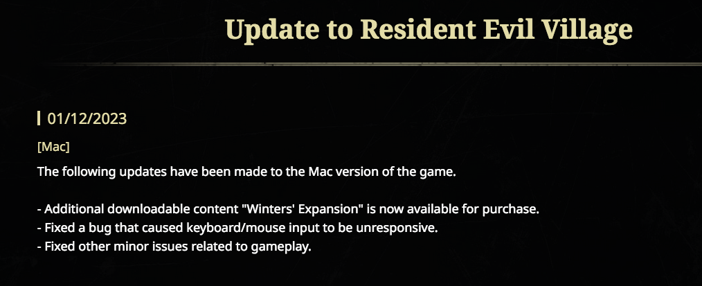 Yes, it was a macOS issue that was solved later with a new version of macOS. Yet, people blamed Capcom and their support had all the work. Given the Apple/Capcom deal, Apple should have hunted the bug down right away and released a patch. I've seen such situations multiple times and the way it was handled wasn't something that should make either side happy.And afaik, the keyboard and mouse issue was a bug with macOS, which was resolved, albeit a few weeks later. It shouldn't happen again.