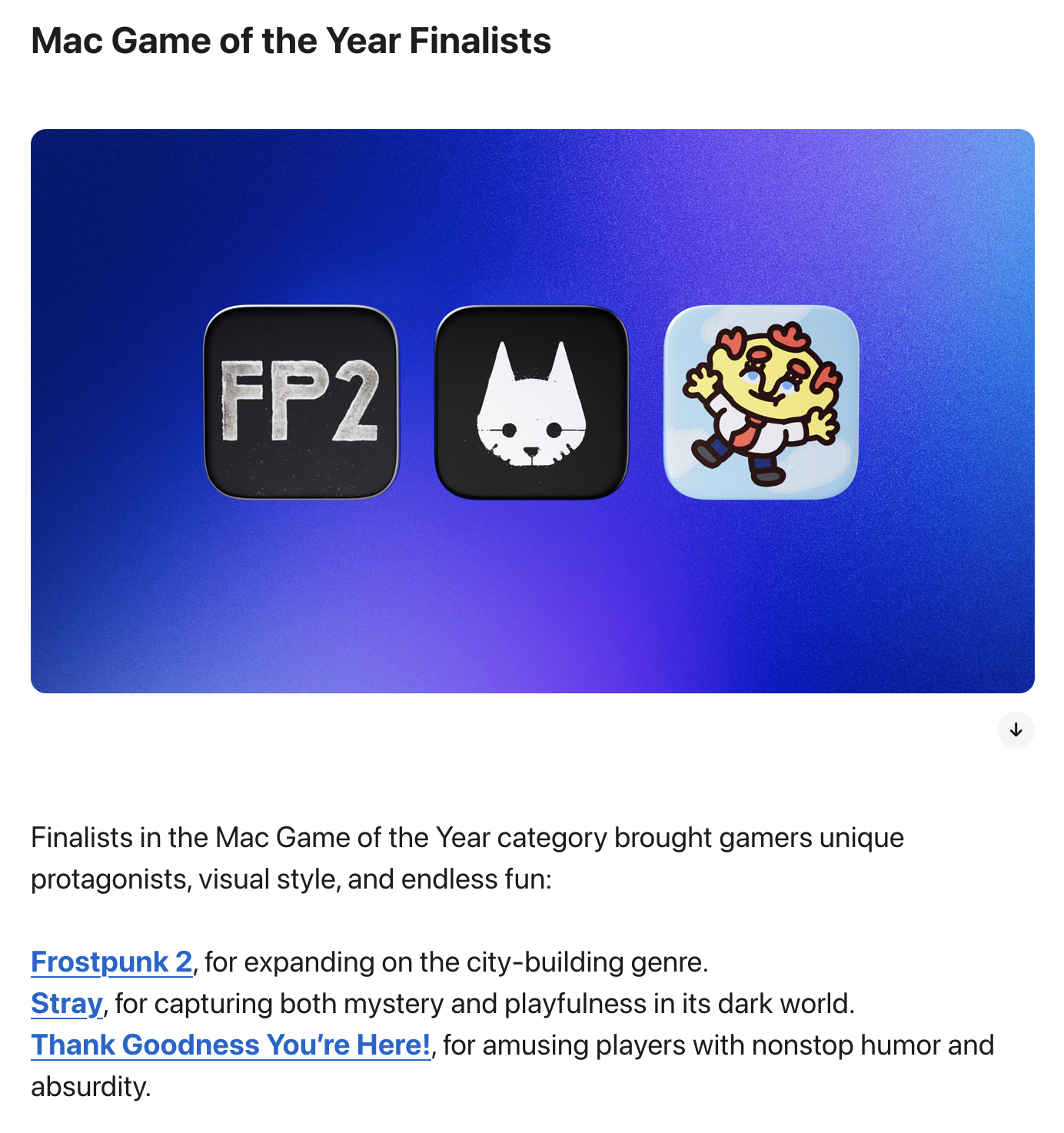 In the late 1990s and early 2000s, I bought quite a few games for Mac, such as Quake III Arena, RTCW, and the Unreal and Unreal Tournament series.Ehhh. That’s true of every platform except perhaps PC and even then not really. If I want to play Astrobot, I need a PS5. Windows doesn’t have it. if I want a Zelda game, I need a Switch. Let’s not pretend any single platform has all the games. Yes the Mac has fewer games than PC, PS etc. it’s also undeniable that the situation is better than it was, which is all people are saying