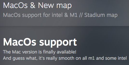 MacOs support for intel & M1 // Stadium map View full event information here: https://steamcommunity.com/ogg/1682970/announcements/detail/3685672640042071146steamcommunity.com