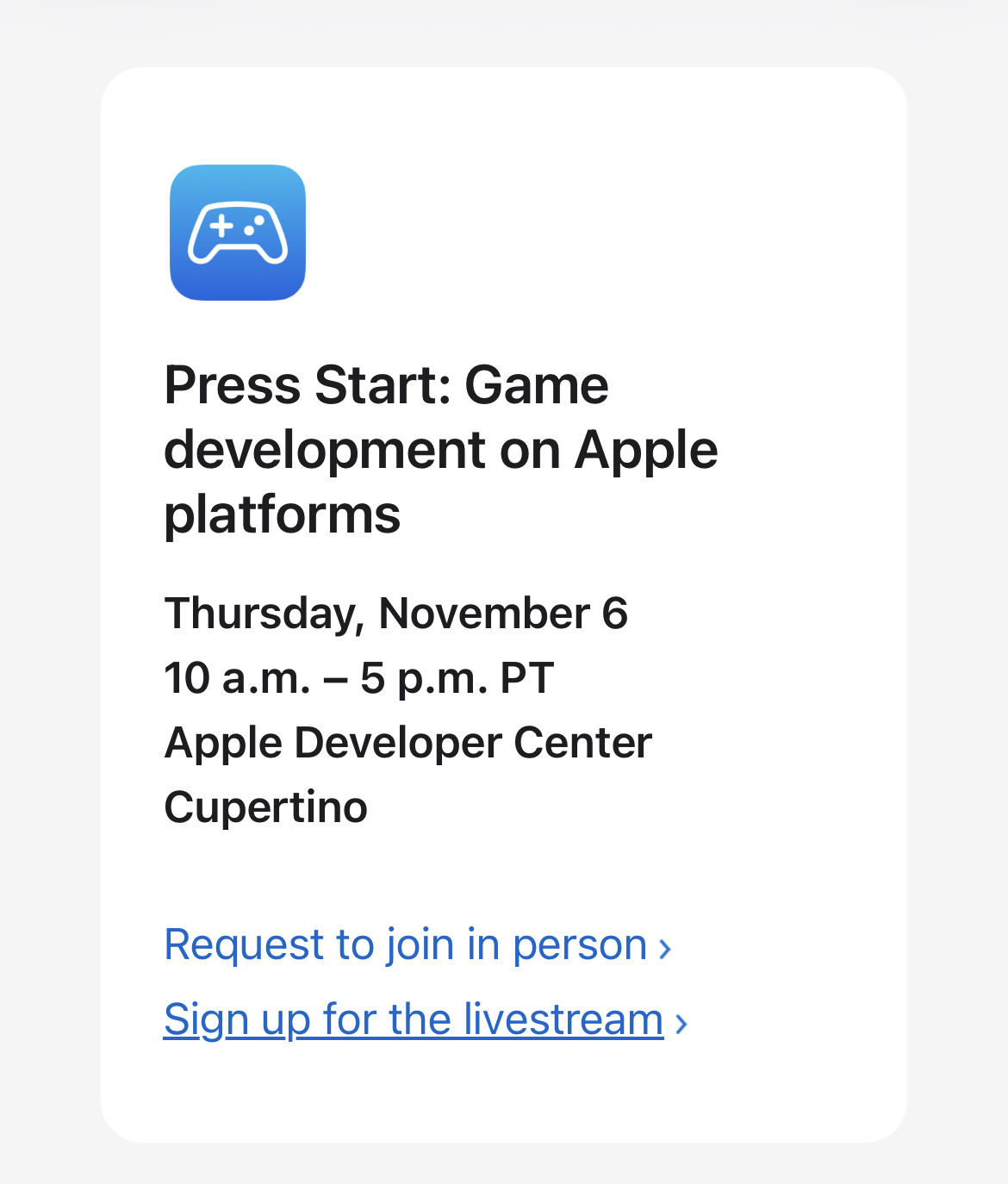 Learn to unlock the full potential of game development for iOS, iPadOS, macOS, and visionOS in this all-day online activity streaming from Cupertino. Whether you’re porting a PC or console title, crafting a mobile masterpiece, or augmenting your game with cutting-edge features, these in-depth sessions will help you find success in the Apple ecosystem. You'll learn how to leverage Metal, optimize for Apple silicon, design compelling handheld experiences, and navigate the App Store to reach millions of players. Conducted in English.