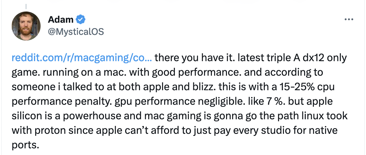 It's been only one day and people are already running Cyberpunk 2077, Spiderman, Elden Ring, Hogwarts Legacy, Witcher 3 and Diablo IV on their Macs at high settings. As said before though the license doesn't seem to allow any commercial products being ported this way. It's only for use with Game porting toolkit so I guess Codeweavers must find their own solution.