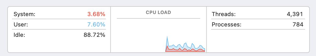 I've checked Activity Monitor, and the processor usage and memory seem normal. There's a bit of swap being used, but that's not new.