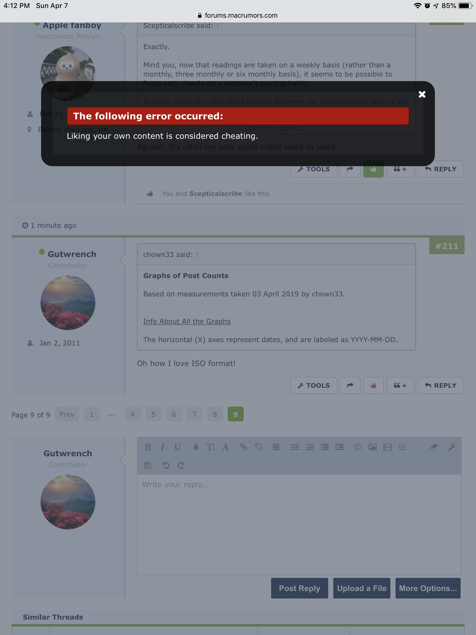Gutwrench, I can lend you a post-liking-hand. Anytime. As brother in arms.