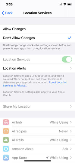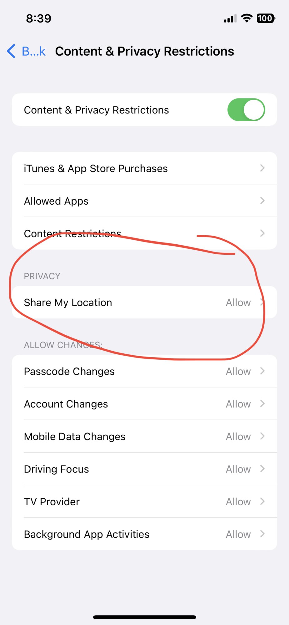 I have tried toggling the share my location to not allow with set time automatically on kids devices toggled on, but it doesn't grey out (like it used to)