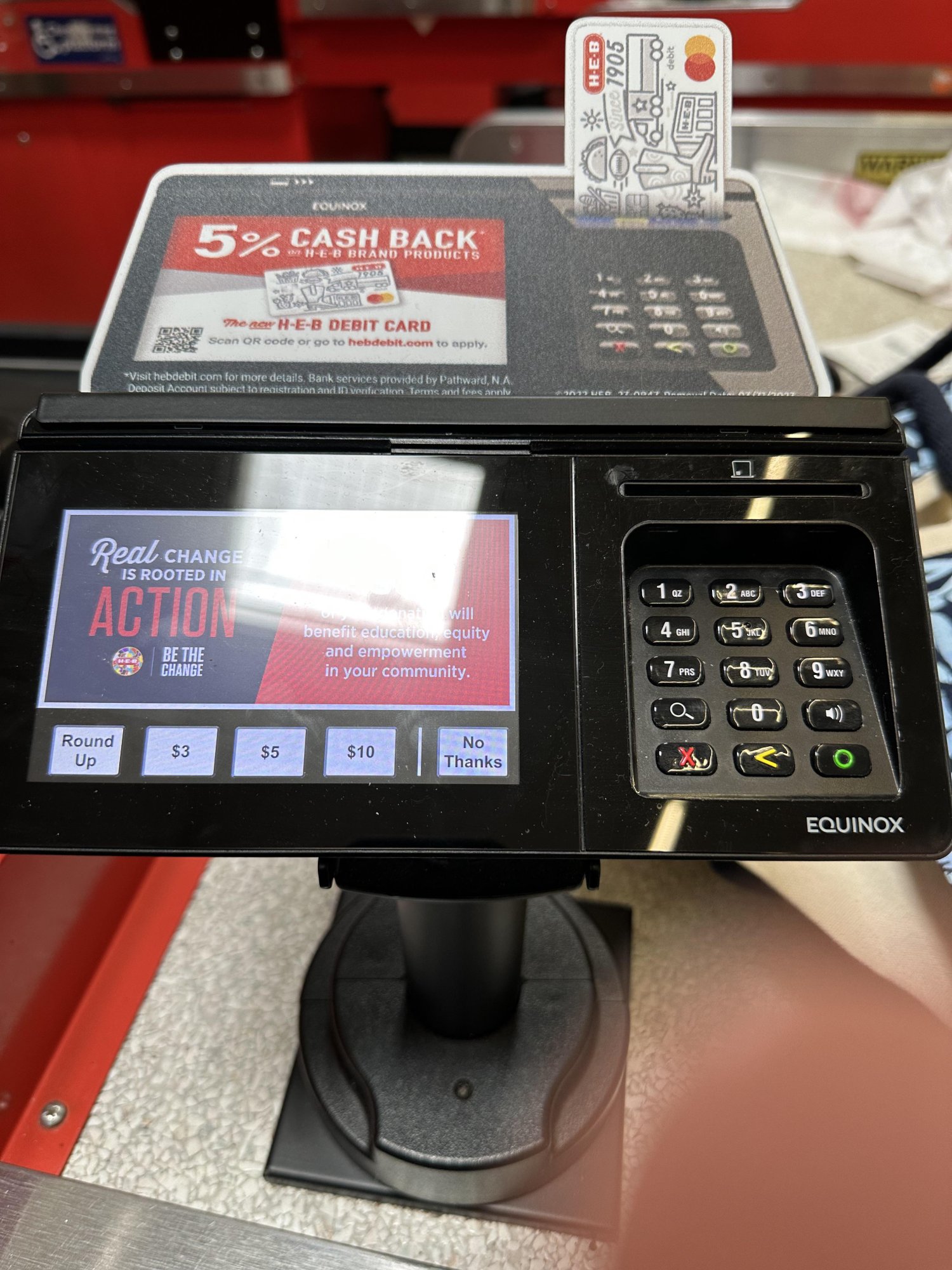 The HEB supermarkets in Texas use credit card machines from Equinox. These credit card machines have contactless payments and Apple Pay but they are turned off.