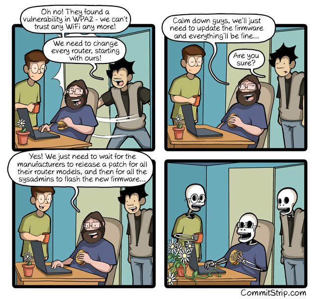 Vanhoef said he began disclosing the vulnerabilities to vendors in July. US-CERT, short for the United States Computer Emergency Readiness Team, sent out a broad notification to vendors in late August. It is now up to device and router manufacturers to release any necessary security or firmware updates.