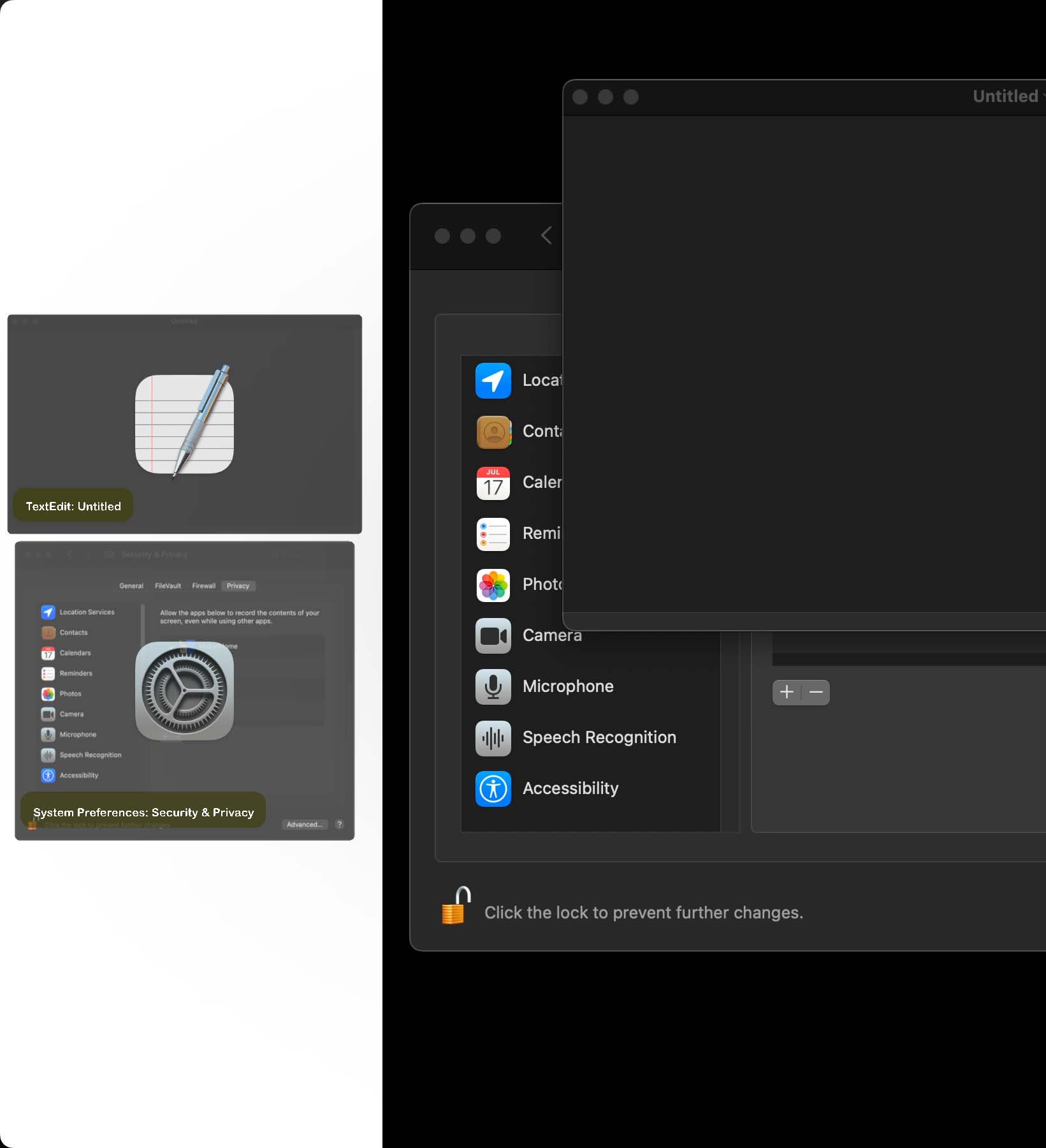 Next, see if you can fix the permission screen. It's a bit jarring to look at that large green and red graphic telling the user to turn on screen recording. The dialog window pops up anyway and that window graphic just adds to the bloat.