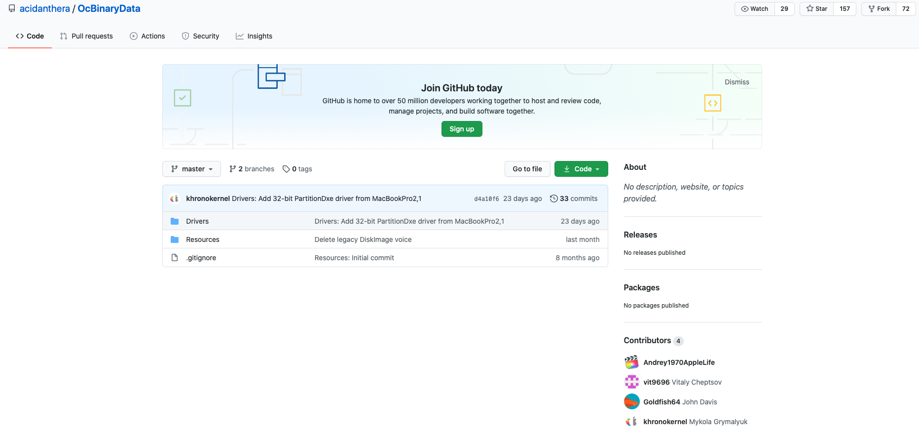Just click on the green button “code” then choose “download zip “ or something very similarI'm trying to enable the graphical boot picker but can't find the ZIP. The link brings me to this page. Where can I find the the OcBinaryData ZIP to download?View attachment 964667