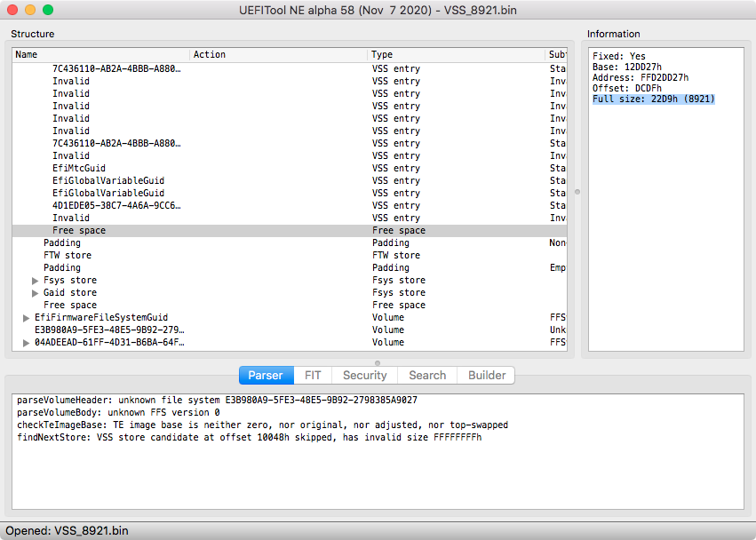 started with a clean nvram, something went nuts with a bootloader, 1st VSS was almost full after only a few boots. In that case the deep nvram reset helped. Of course I have the binwalks and dumps but this is clearly visible.