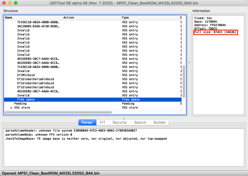 This is the Free Space of my dumped SROM before I reflashed today because of my issue: FreeSpace 14376. This copy was a clean/reconstructed one exactly on November 16th ( 3 months ago ). I am not a very busy computer engineer... I am just a user... I have really done many changes in Opencore in the lasts few weeks.... that is true....