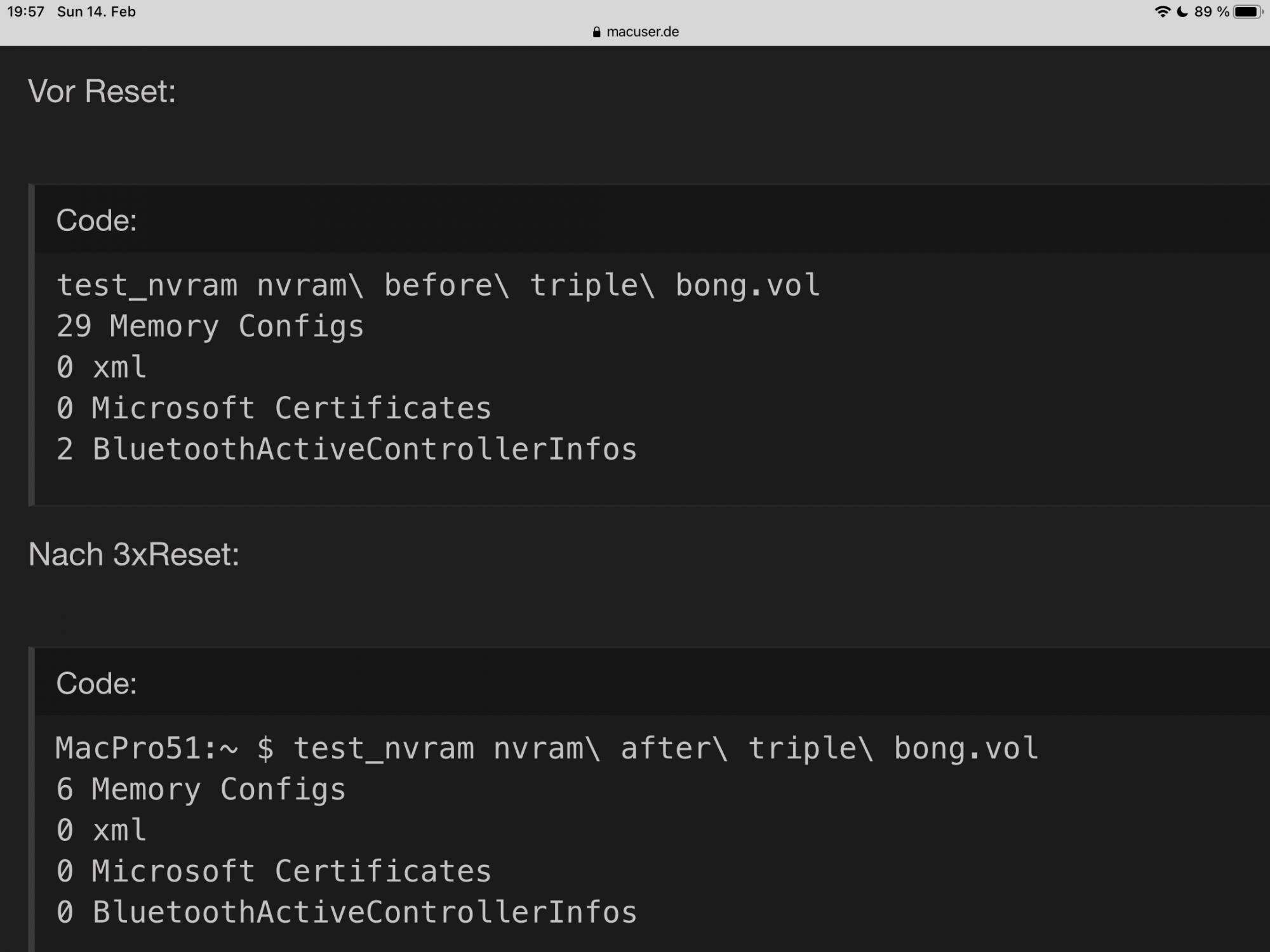 One thing that is clear, no one should start with OC tests without knowing the status of the NVRAM free space. Like I always say, the MP5,1 NVRAM is tiny for todays standards and it's deadly for someone with a already compromised NVRAM, even reseting the NVRAM 4-times continuously before anything.
