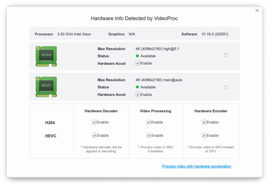 i use on macos big sur 11.2.3 for render normal bro, but i try playing game, macpro die and must unplug power cable, but on macos 11.1 and 10.14 100% Normal No problem , on videoproc not detect of VGA, how to detect VGA??