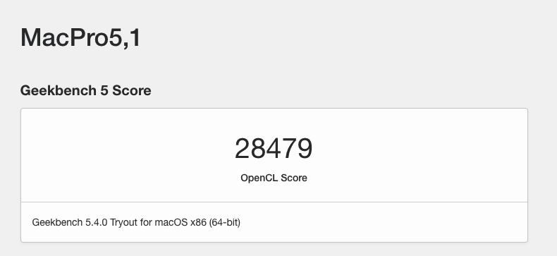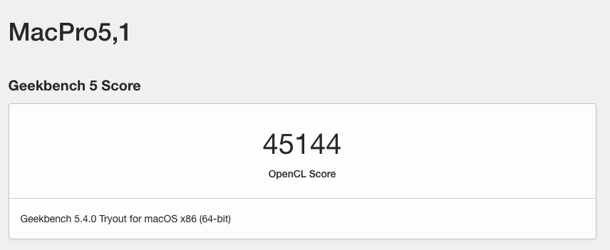 (Mac Pro 4,1 flashed to 5,1. Catalina via OpenCore. 48GB RAM. Radeon RX580 4GB.)