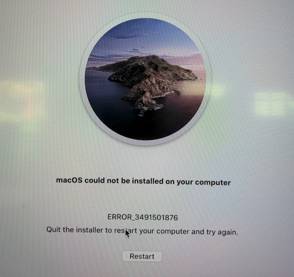 Right! I tried that, and indeed Software Update then prompted me to install that update, which seemed to go fine, then on the reboot after the black screen with apple and progress bar, I got the attached message (ERROR_3491501876). Fortunately, the reboot after that one was fine, but I was again running 19H1030, and am back to the state where it doesn't see the update, and won't let me install it manually. Hmmm.