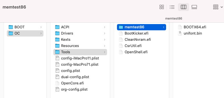 If you could provide a link or feel like writing a guide on how to install/use Memtest86 from OC's boot picker, I would be happy to try that and I am sure it would help others troubleshooting down the road.