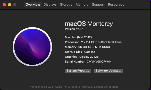 I recently upgraded from Catalina to Monterey on my Mac Pro 5,1: