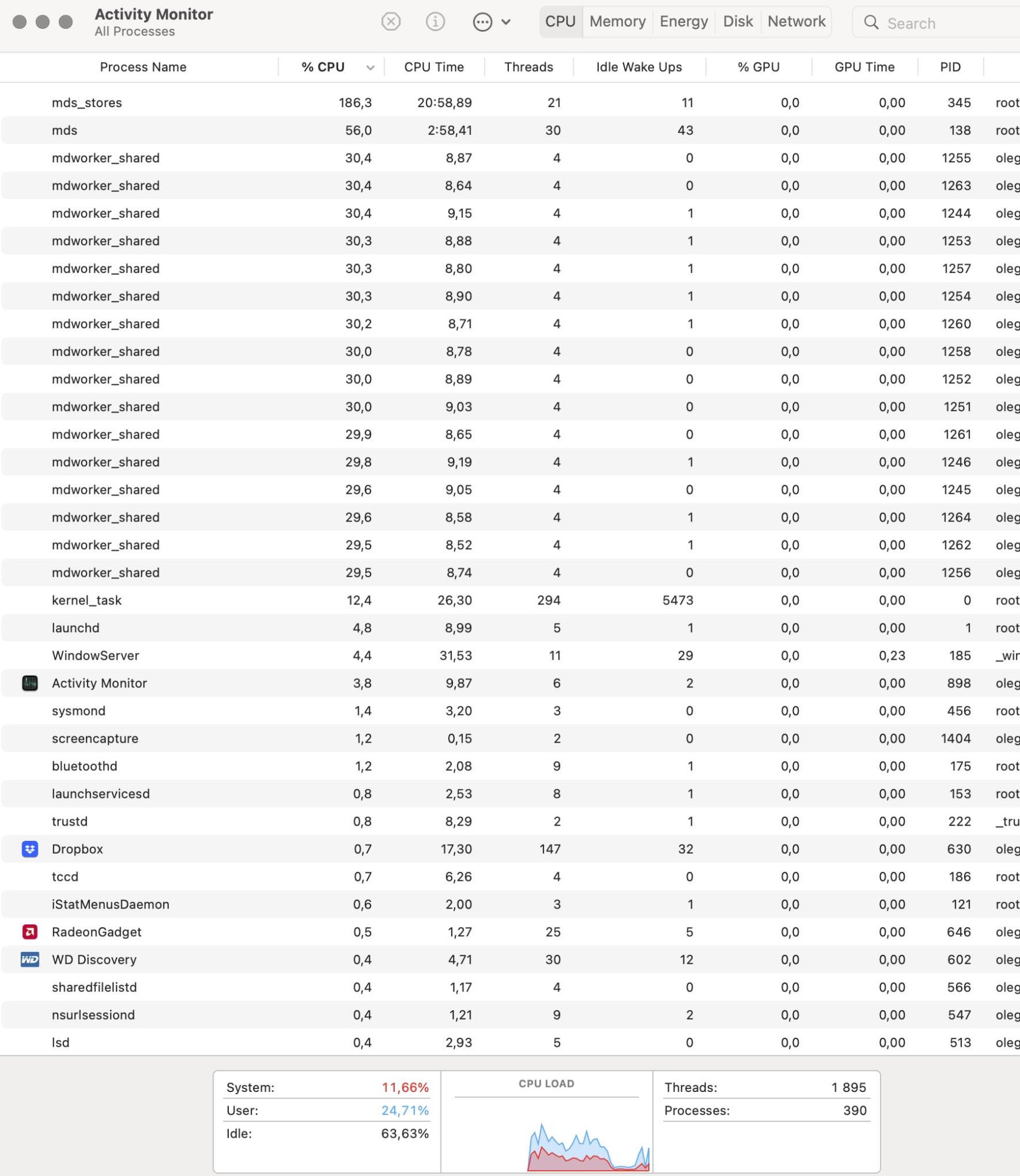 Yesterday I discovered strange mdworker activity, and besides, disk indexing took an abnormally long time - at least 20 minutes.