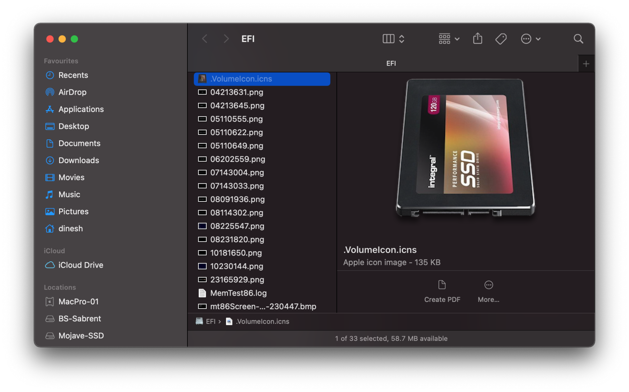 So OpenCore displays the SSD's EFI Icon correctly ("EFI" above).