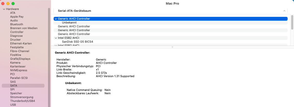 Hello guys, I'm currently running OpenCore REL-091-2023-04-03 on my Mac Pro 3,1 which I have installed with the aid of OCLP. It certainly is a fantastic piece of software and works great on my beloved Mac Pro for the most part but I do have issues with two of my PCIe cards. One is a Sonnet 2 port eSATA card and the other card is a generic 2 port SATA controller card sitting in the mini PCIe slot (my Airport card is in a riser card with external antennas for better reception – so that's why). I checked and both cards use the ASMedia 1061 chip which works great in patched Mojave and Catalina (dosdude1 hacked installs). However, when I boot Mojave, Catalina or Big Sur with OpenCore said 2 cards cease to work. I do have some basic understanding of hackintoshing and poked around the config.plist but I don't really know what to change there ...