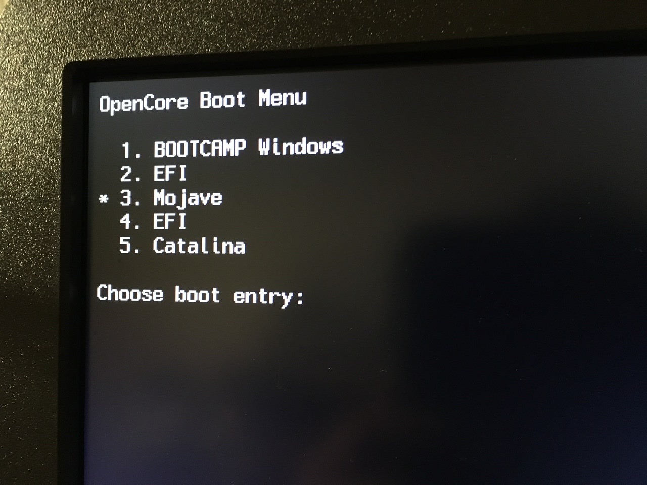 - Power on. You should see Windows and Mojave appear as boot options on the OpenCore Boot Menu.