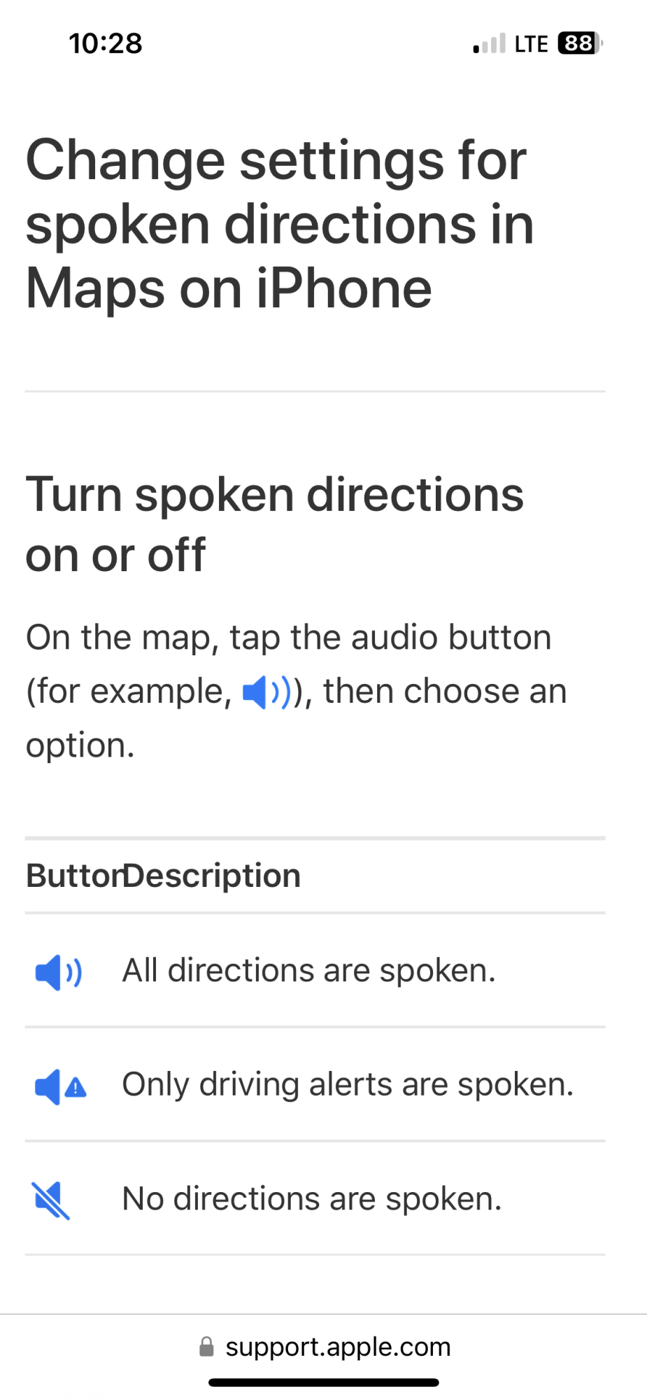 Doing an online search, this Apple page cites an Audio button on a map, but I can’t find one!