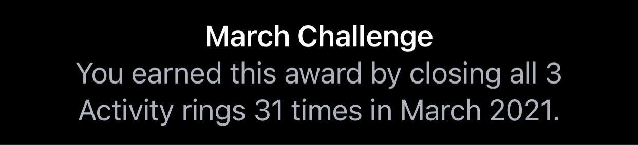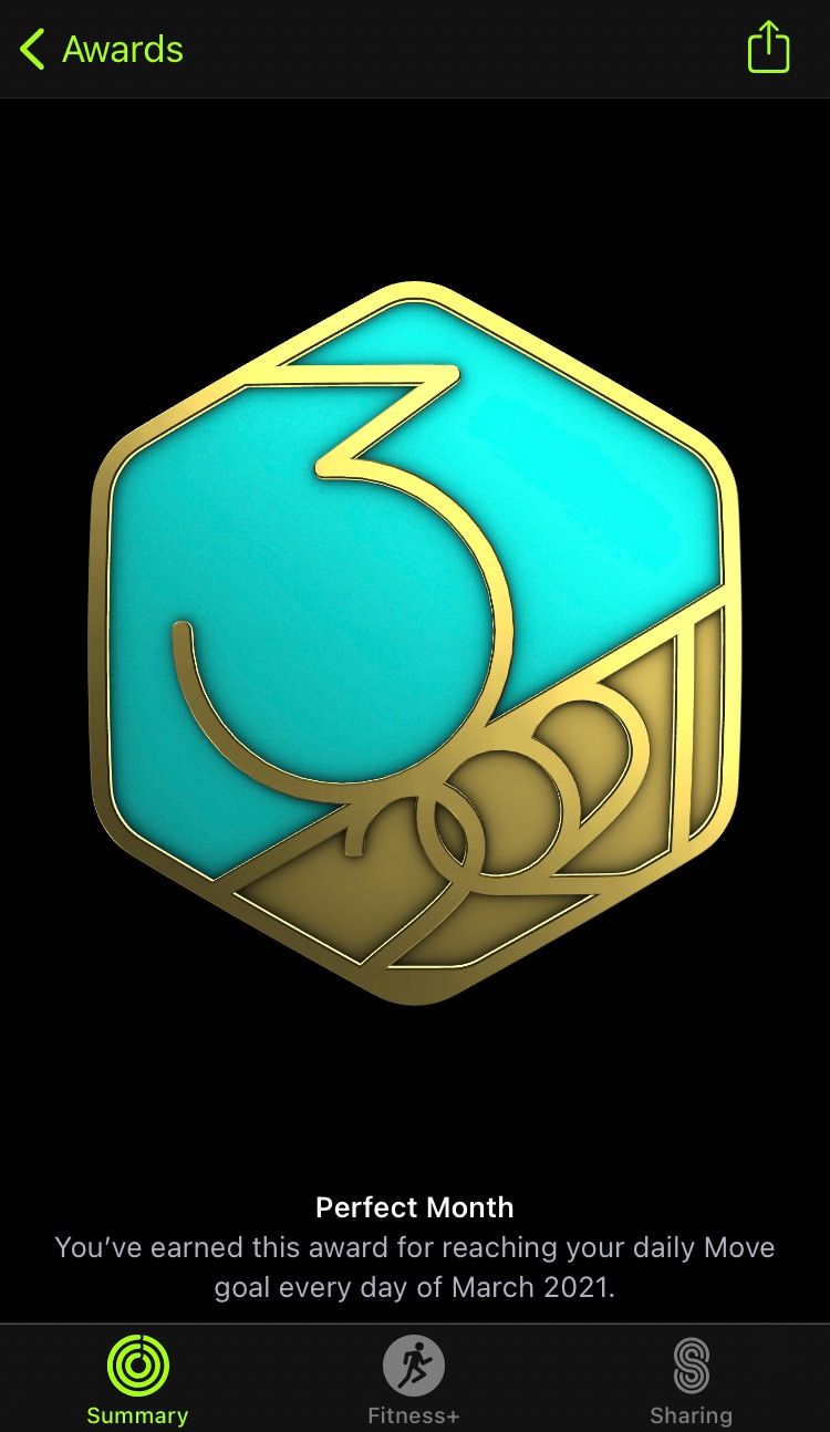 And since I had to close all 3 rings every day, I got my perfect month too.