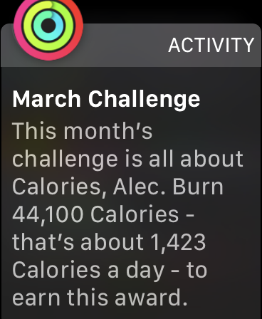 Challenge is to close all 3 activity rings for 31 days. Apple doesn't believe in rest days.![]()