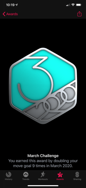 Not even in the "Go For It" section?Yeah I thought I'd seen it before on the phone, but can't see it now under Awards on the iPhone? I can see Jan and Feb challenges but not March!