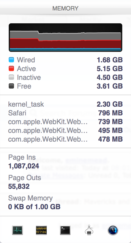 What you should concern is Swap used. If it haven't touched Page files, your RAM is not really full then, just the way to manage RAM in Mavericks is different.![]()