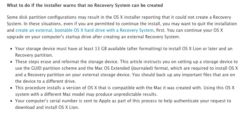 As mentioned in my title, when I go through the install process for Mavericks it starts to install, but then says it has failed because the recovery system could not be created. What does this mean, and how do I solve it? Thanks in advance.