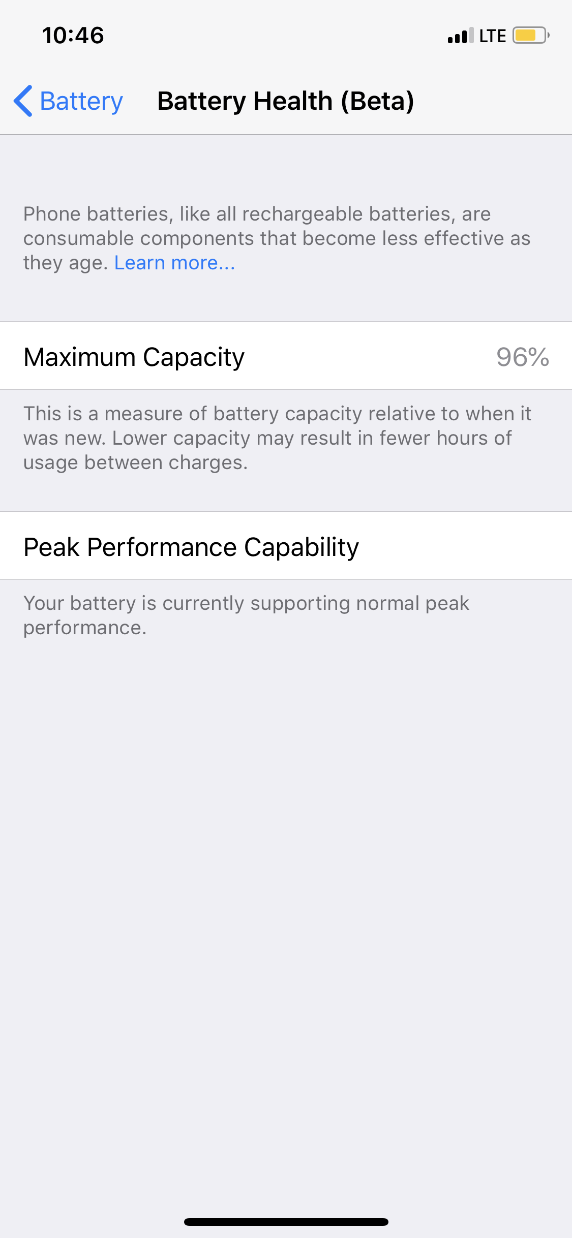 A few weeks ago after I downloaded the latest public beta my battery maximum capacity was at 100% now it’s at 96%