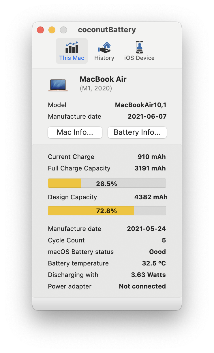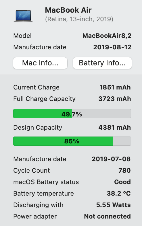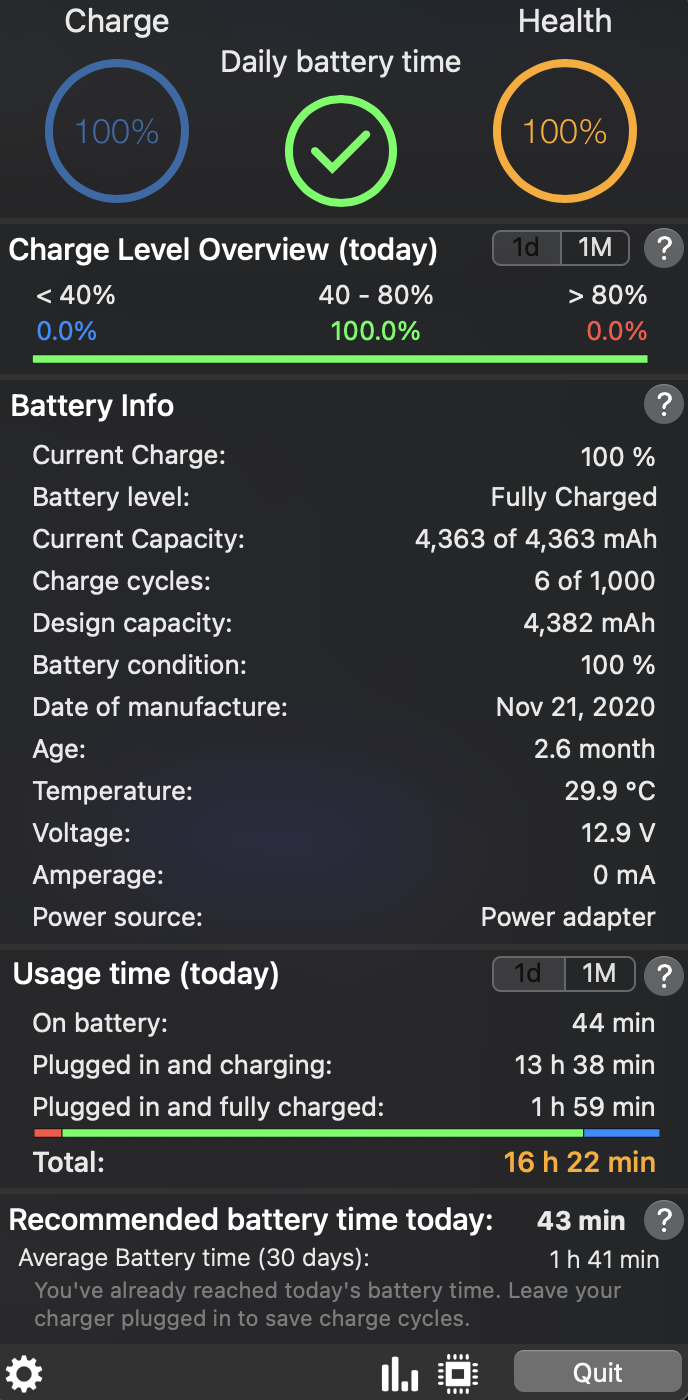 Hi I have a new problem with my battery. I bought this MBA M1 in 25 November 2020 and the maximum battery capacity was at 100%. Today is 8th January and the battery capacity is at 99%. It dropped quite fast I think, if this continue in this way my battery will be died in a couple of years. What do you think?