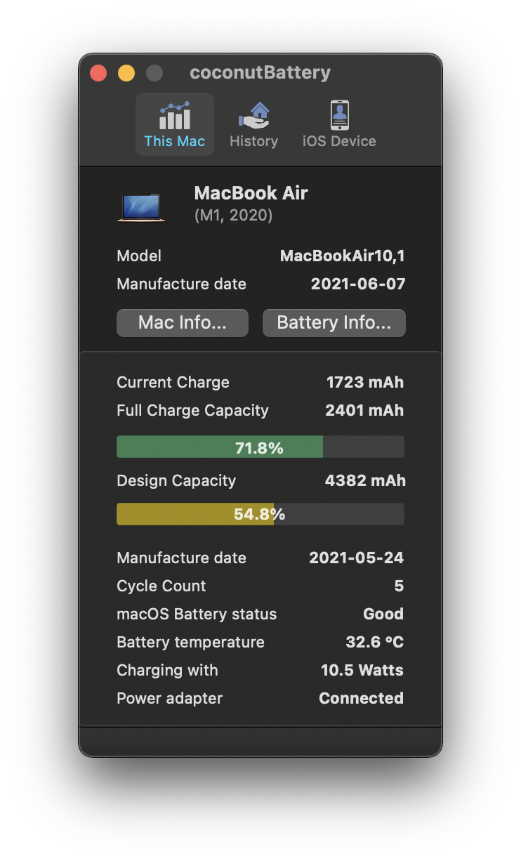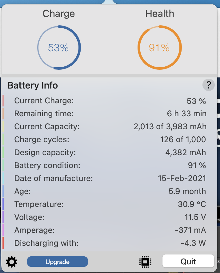 we I get minus numbers in coconut battery. try better battery from app store. it shows me 88% and macOS shows me 93% I'm at 50 cycles now. I used at 100% plugged consistantly may be for a month or tww. was a hectic time. plus I though macOS battery management will take care it. but as I can see it certainly didn't anyways. it dropped from 100% to 93 like within a month. but ever since its same. so I'm bit relieved. I notice battery temp rising when I connect my samsung T7 SSD. I kept it plugged all the time since the day I bought this btw. what I wanna say is try to narrow it down and identify whats causing the issue.Mine has 91% after only 5 cycles. Always unplugged.