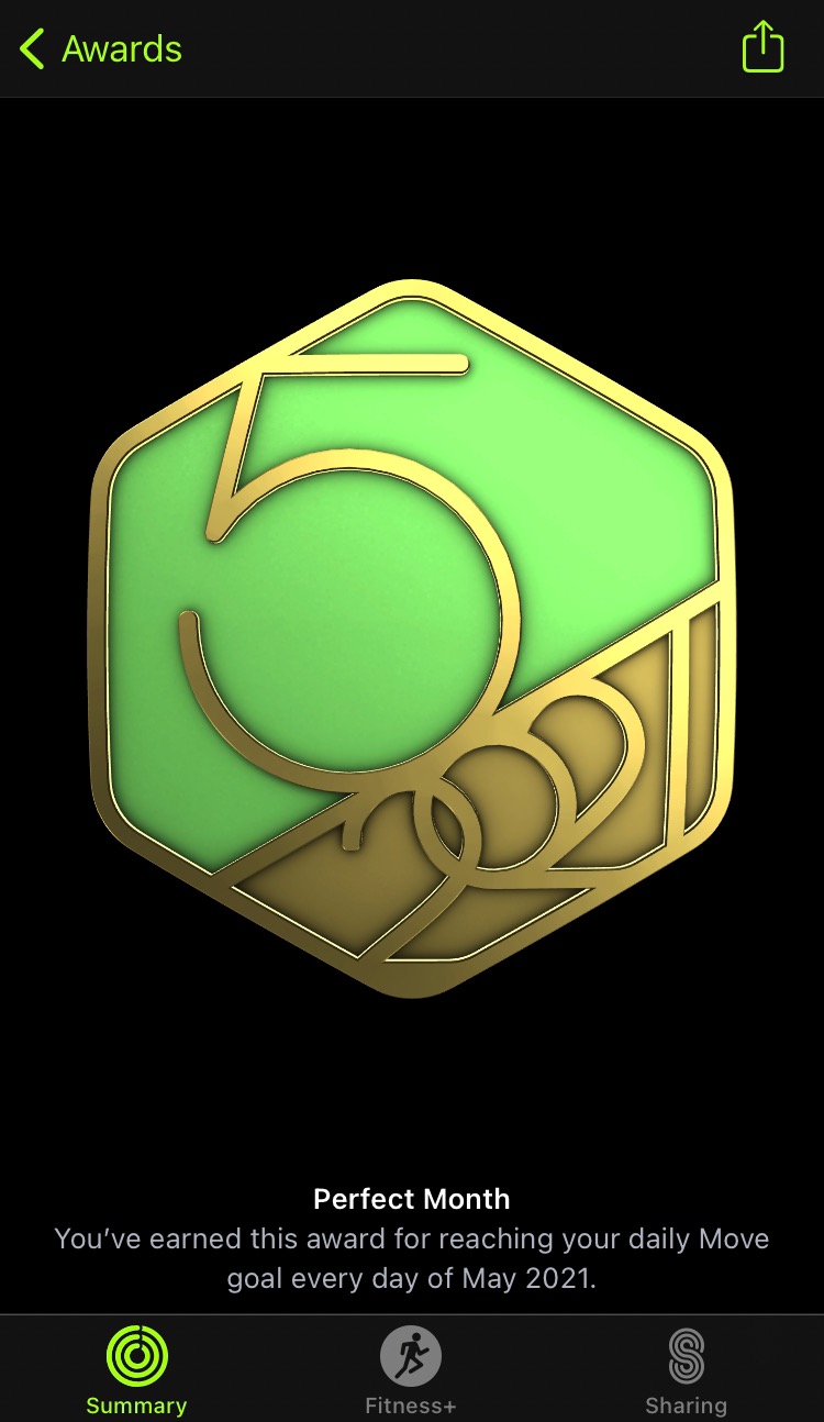 Congratulations ! Wish Apple at least did some of the challenges by 'percentage completed' rather than simple 'days'.I didn't get my monthly challenge due to injury, but I did this consolation prize 😶: