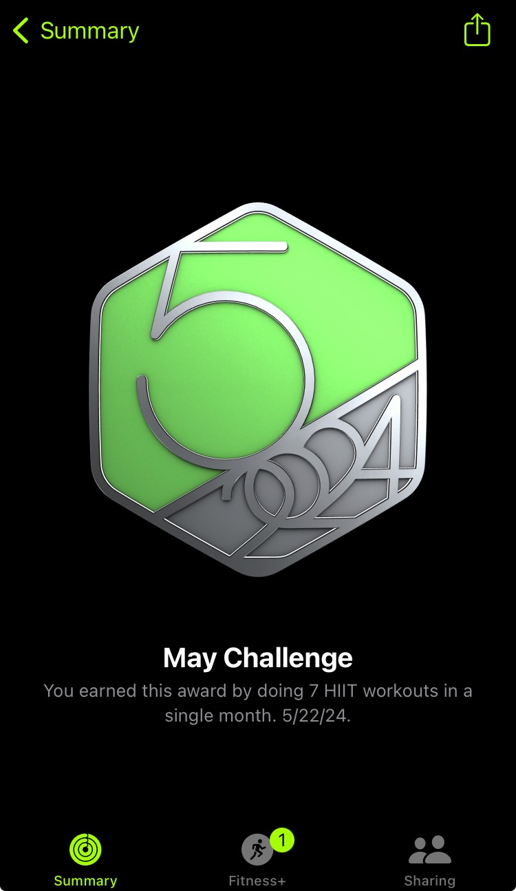 I think both are too simplistic. I'm hoping that with Apple's recent push to hire AI talent, that they'll put some of those resources on the health app. If I hired a personal trainer, the first thing he or she would ask is to ask about my goals. Am I training to run a marathon next fall, or do I just want to do enough exercise to lower my risk of a cardiovascular event? The health app knows my age and the sensors enable it to ascertain my current level of fitness, and I can imagine a progress bar that charts my fitness level over time as I get closer to achieving my goal (or my lack of progress should I slack off). Challenges should be calibrated to motivate me to attain and then maintain that level of fitness, rather than a blind insatiable attempt to push me to do a little more (or in the old days a lot more) than I did last month.Ah the good old daysI remember it well, when we had a full monthly challenge (every day of the month) and had to work hard for your badge. Today is just so easy for me