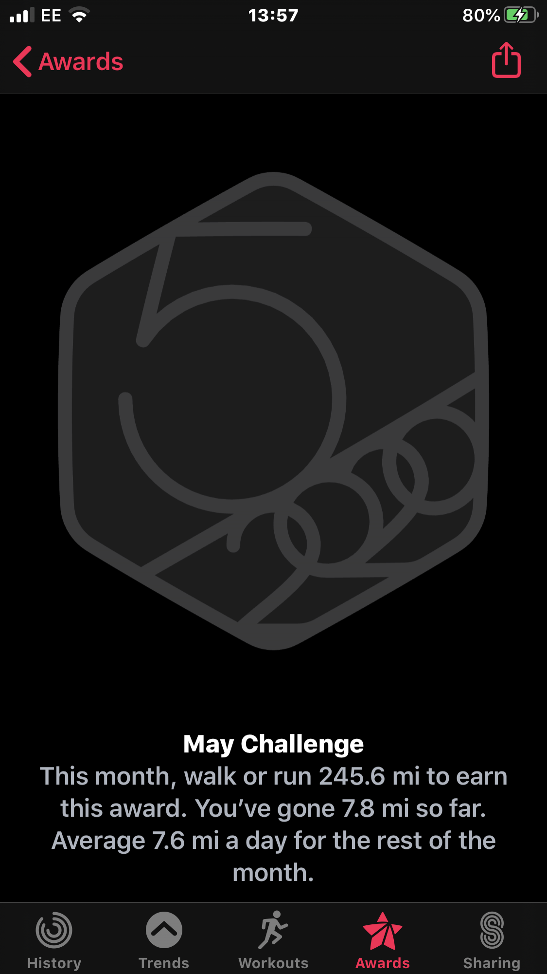 Same. I will be using the 'Other' workout more often than I'd like as my AW5 rarely gives me enough credit for the exercise I actually do.2050 minutes training ... 66 p/d ... lets see. If COVID continues and the weather stays fine this could be done by cycling with my e-MTB.