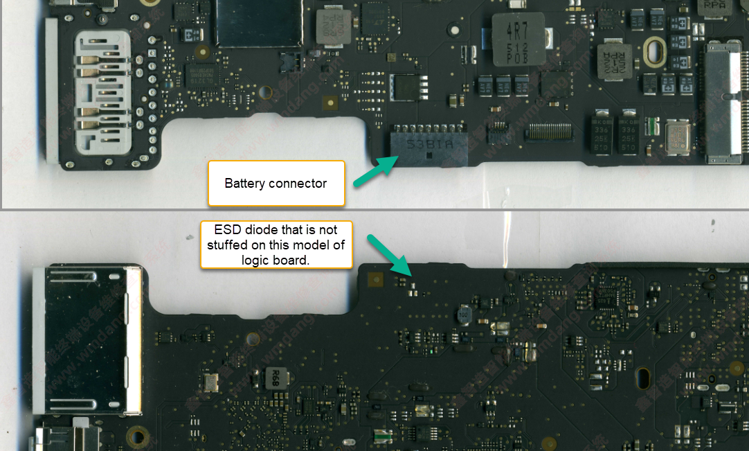 My 13" 2017 Air suddenly died today from power loss while running on battery with ~80% charge, and now it will not power up at all from battery. If I remove the battery it powers up fine from the power adapter. If I measure the battery's voltage when disconnected (unloaded) I get nominal 7.8 volts. The battery is a third-party battery with about 300 charge cycles on it, giving me some 6-7 hours of use, and up until now it has never showed any issues.
