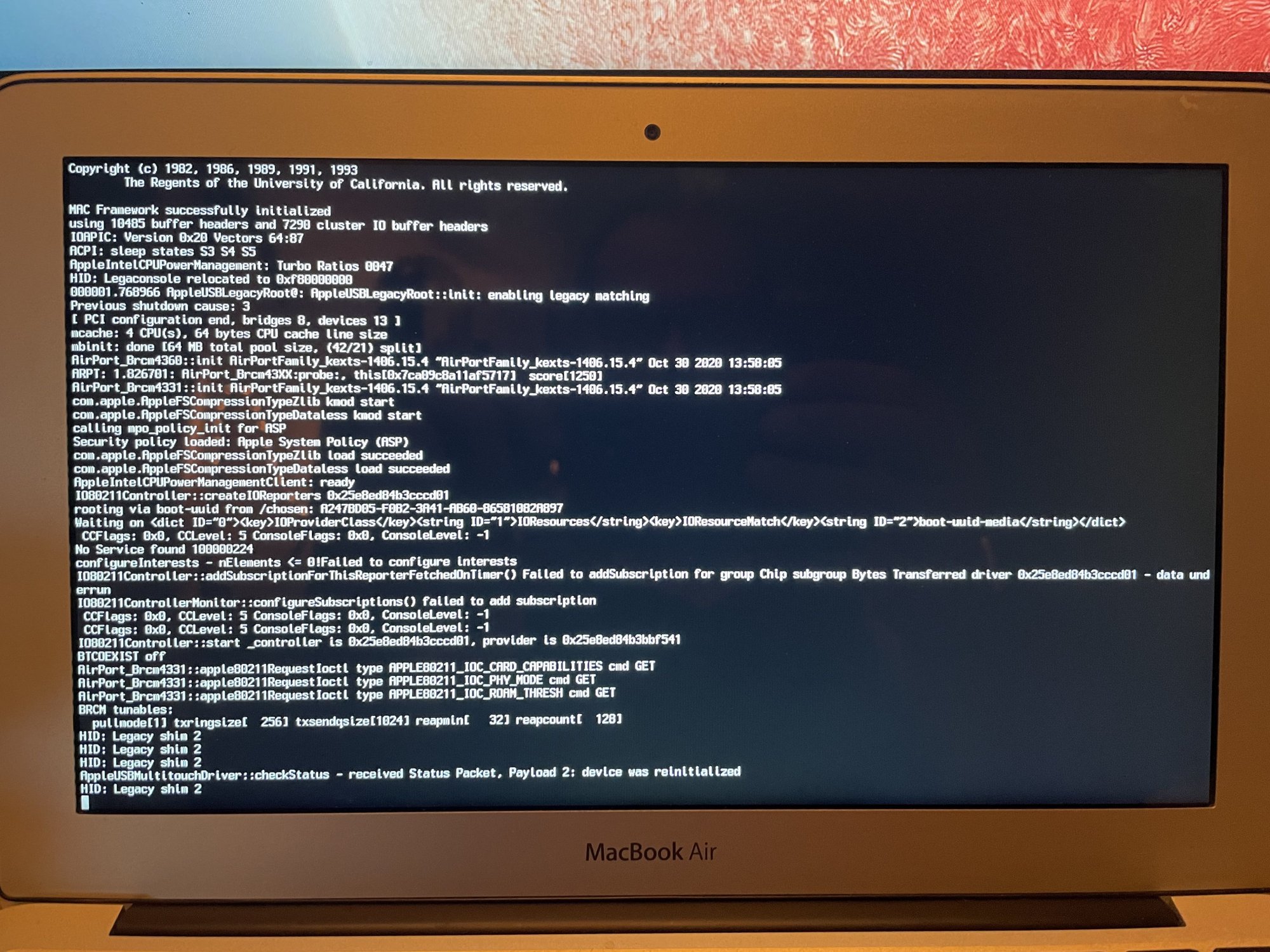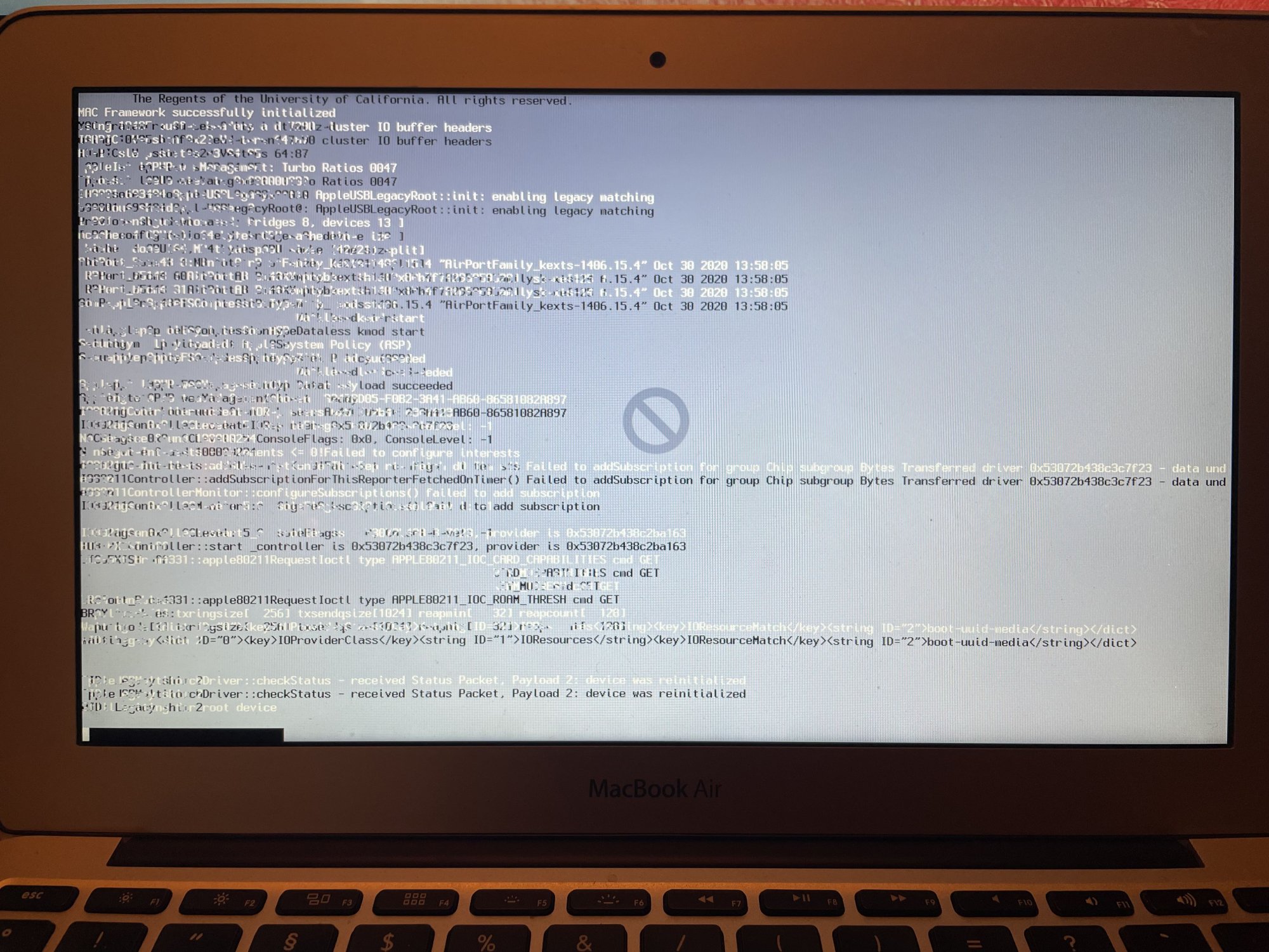 As for the booting from another volume, an installer on a USB SSD (no USB flash drives handy in the correct size), it takes a long time to boot from that. It is still not showing any progress. The mouse pointer is not movable. No progress in the last 4 minutes.